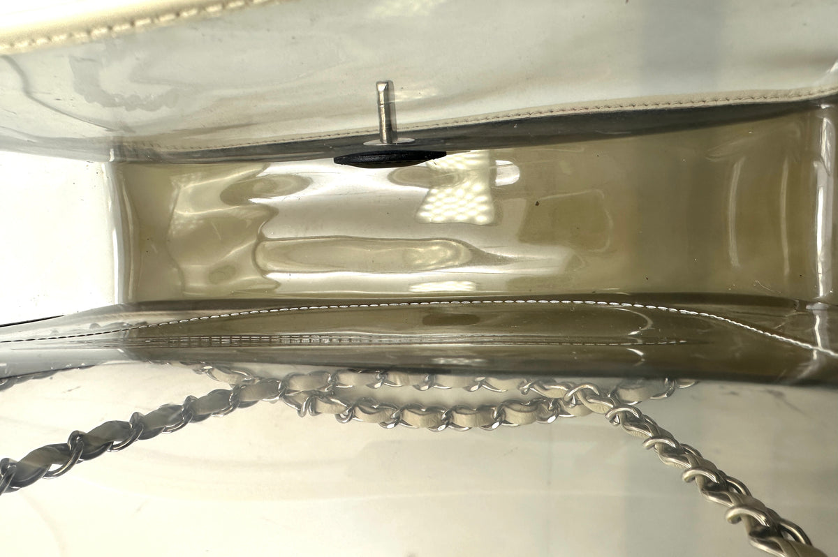 Material: Transparent PVC with White Leather Trim