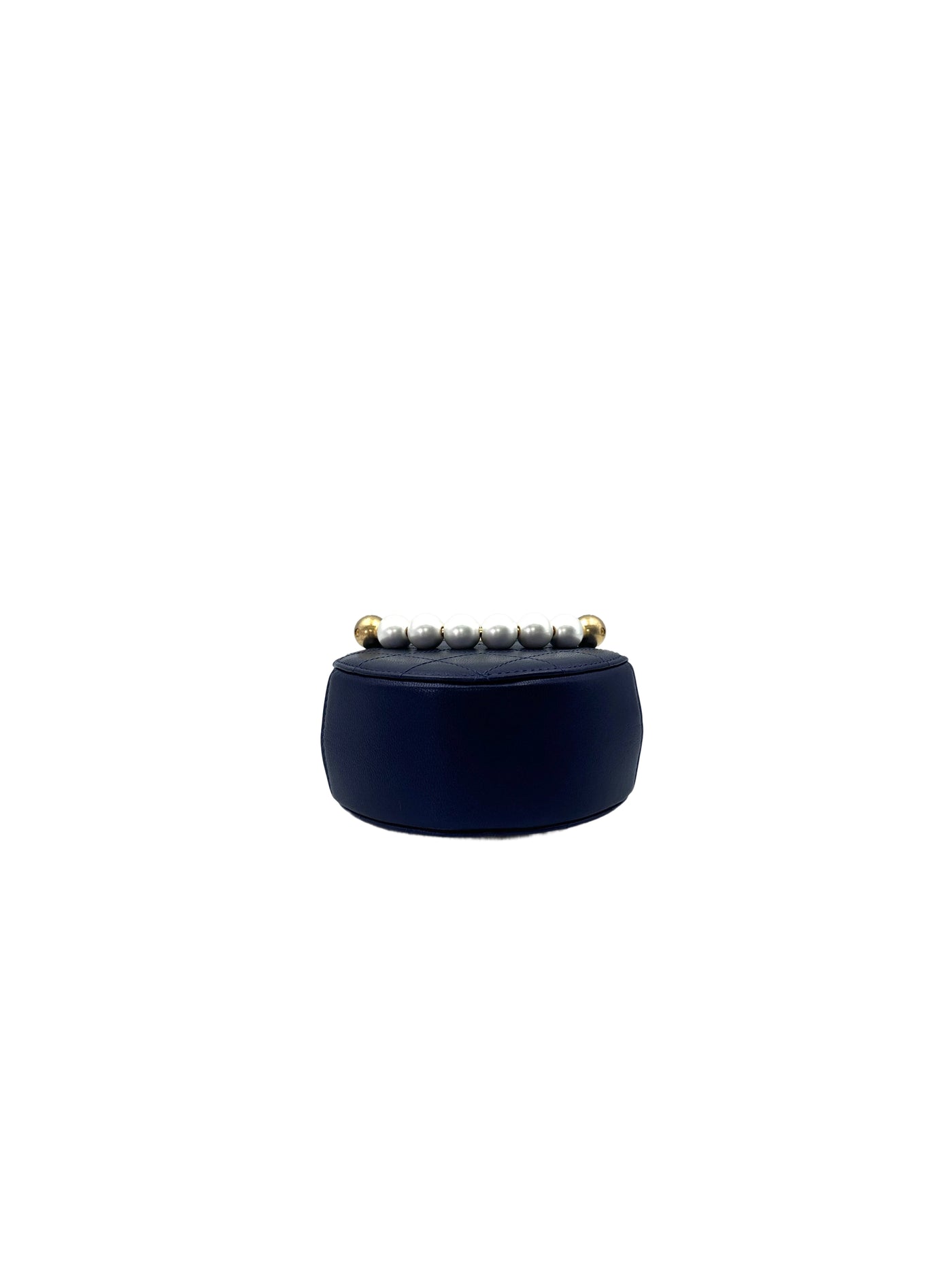 Chanel Chic Pearls Navy Quilted Leather Round Clutch
