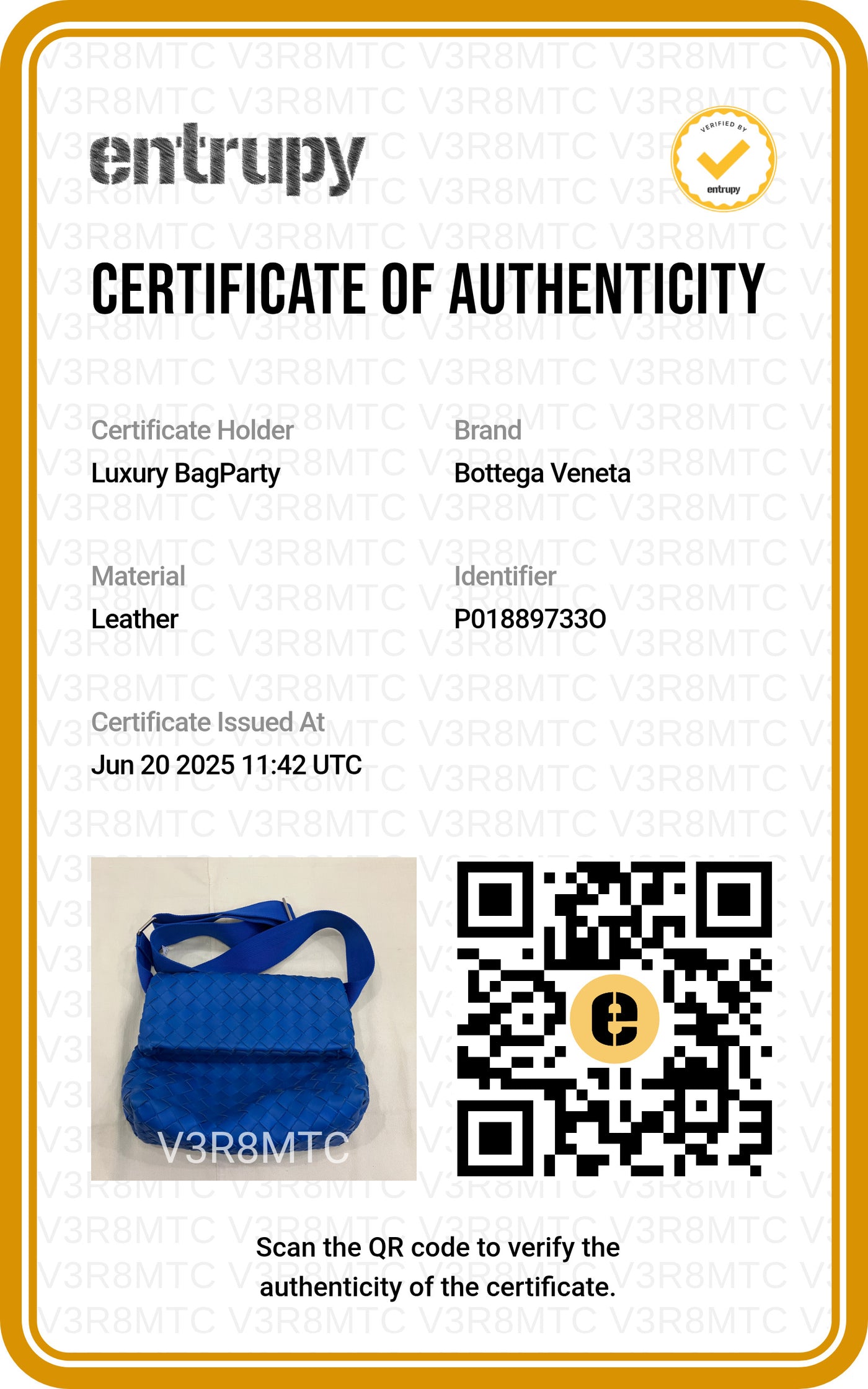 AUTHENTICITY GUARANTEE - Purchase will come with certificate from Entrupy