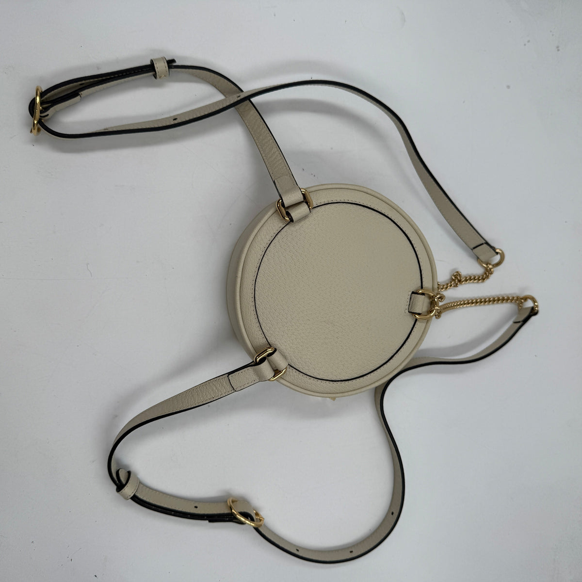The Gucci Ophidia Round White Backpack is a unique, stylish, and functional piece from Gucci's Ophidia collection, known for its mix of classic design elements with modern flair. This particular round backpack, in white, offers a fresh and luxurious twist on the backpack trend, combining the iconic Gucci monogram with sophisticated detailing.