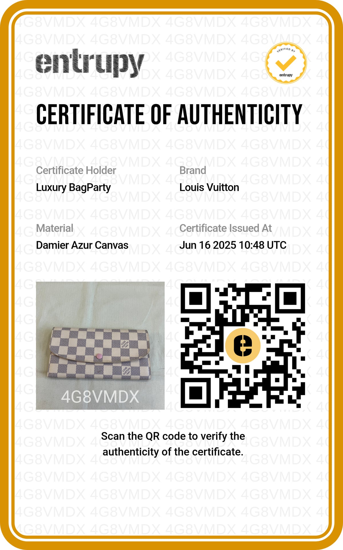 Inform when this item available Louis Vuitton Emilie Wallet Damier Azur Canvas