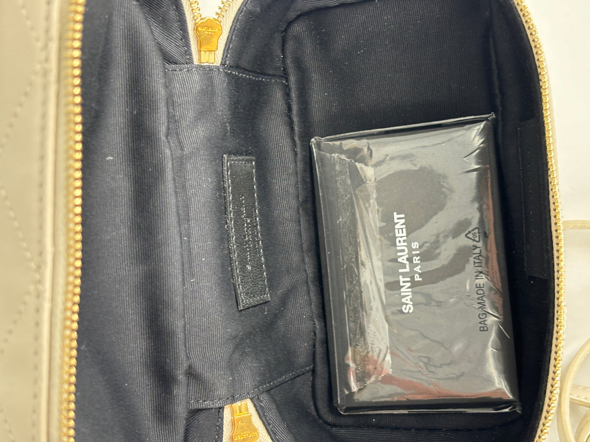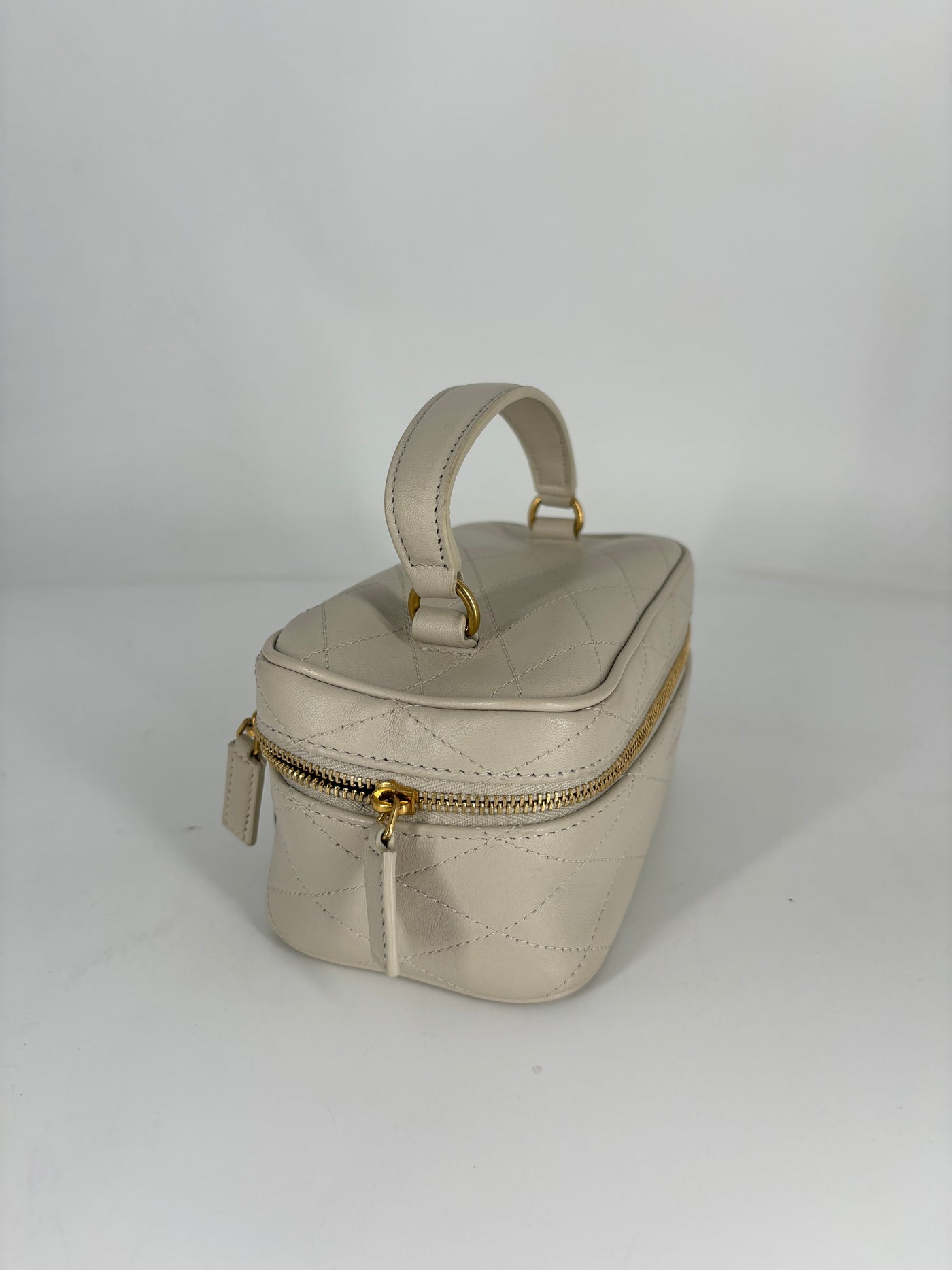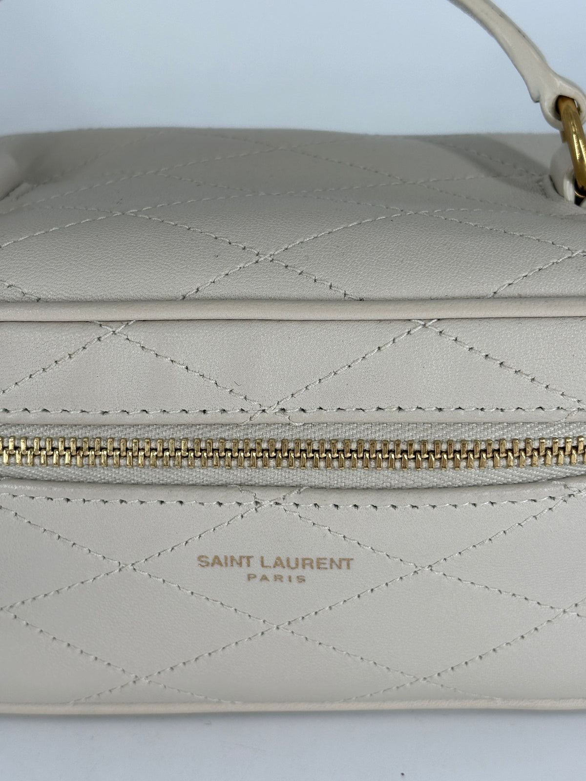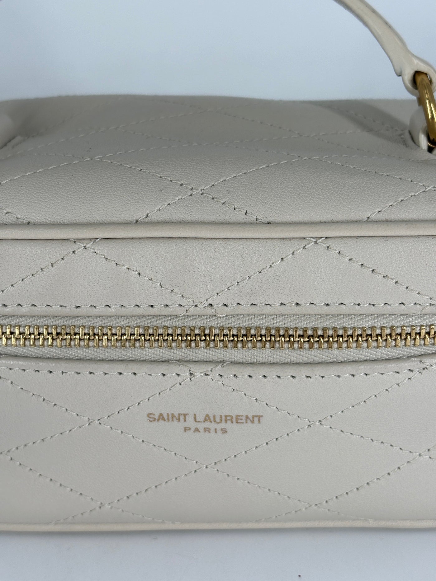 Inform when this item available Saint Laurent Grain De Poudre Quilted Vanity Bag Top Handle Crema Soft